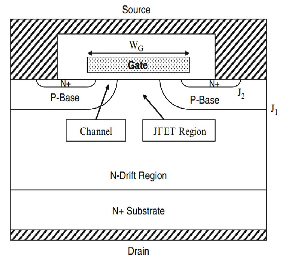 与传统平面MOSFET不同,VDMOS的主要特点是其垂直结构,即电流沿垂直方向流动。这种设计使得器件能处理更高的功率。